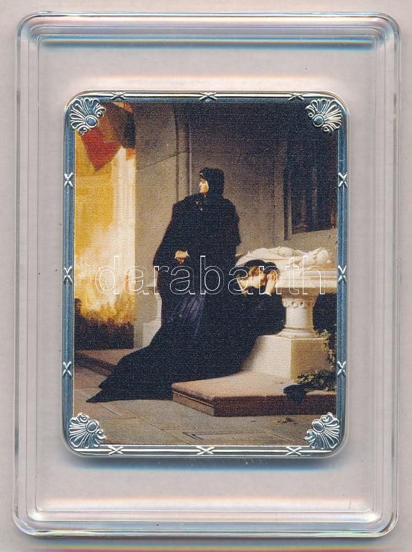 DN "Magyar Festészet Remekei - Liezen-Mayer Sándor: Erzsébet és Mária Nagy Lajos király sírjánál, 1863" ezüstözött Cu emlékérem multicolor festéssel, tanúsítvánnyal (46x36mm) T:PP