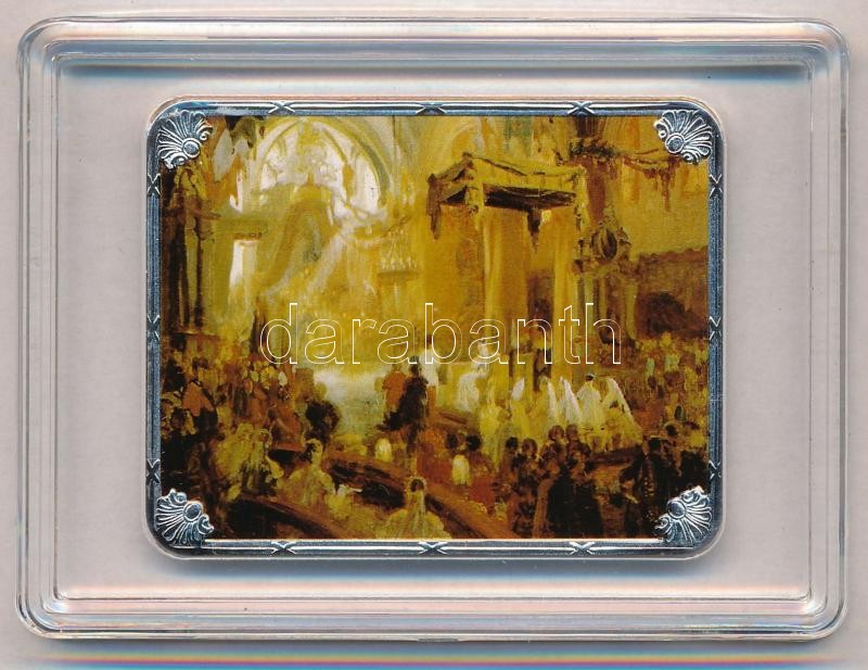 Beschreibung: DN "Magyar Festészet Remekei - Székely Bertalan: A koronázás, vázlat, 1867 " ezüstözött Cu emlékérem multicolor festéssel, tanúsítvánnyal (46x36mm) T:PP