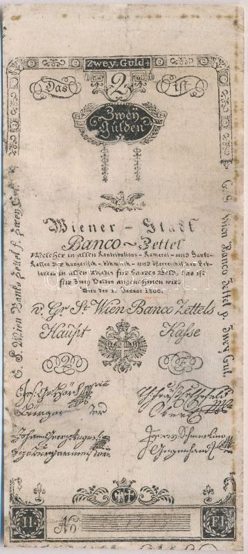 Habsburg Monarchy 1800. 2 Gulden "Wiener-Stadt Banco-Zettel" with watermark C:G restored