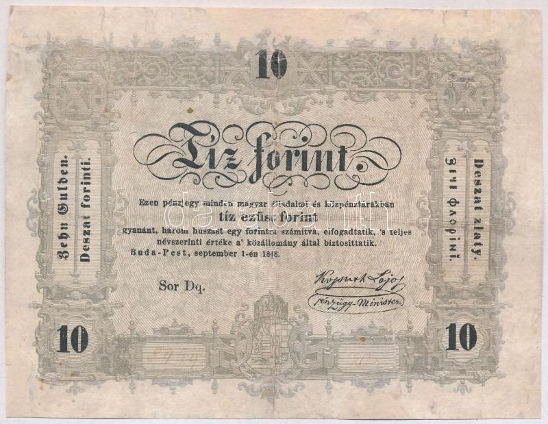 1848. 10Ft "Kossuth Bankó" hátlapi szövegben "BÜNTETETT... https://www.darabanth.com/de/318-Fernauktion/318.0/Numismatik/Ungarische-Banknoten~1000006/1848-10Ft-Kossuth-Banko-hatlapi-szovegben-BUNTETETTNEK-sajtohiba-TIV-restauralt~II1756910