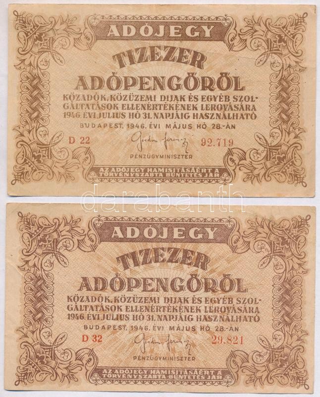 Beschreibung: 1946. 10.000AP (2x) eltérő színű sorszám, illesztőkeret T:III szakadás