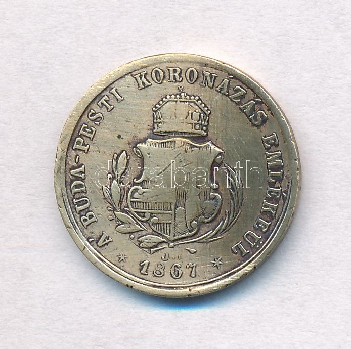 1867. "I. Ferenc József és Erzsébet budai koronázásának 25. évfordulójára" Br zseton. "ÉLJEN I. FERENZ JÓZSEF ÉS ERZSÉBET MAGYAR KIRÁLYPÁRJA / A BUDA-PESTI KORONÁZÁS EMLÉKEÜL 1867" (20,5mm) T:3