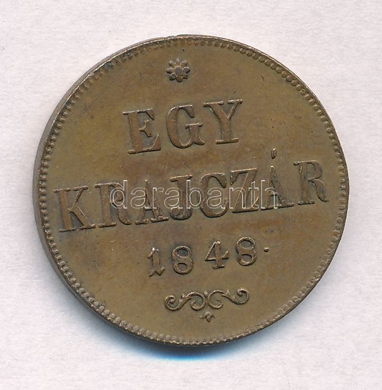 Adamo B1 https://www.darabanth.com/de/318-Fernauktion/318.0/Numismatik/Ungarische-Munzen-und-Munzen-mit-ungarischem-Munzzeichen~1000007/1848-1kr-Cu-T1-ph---Adamo-B1~II1756416