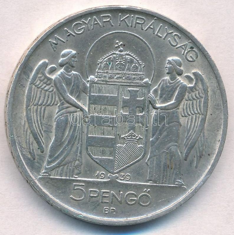 Beschreibung: 1939. 5P Ag "Horthy balra" T:2 kis ph.