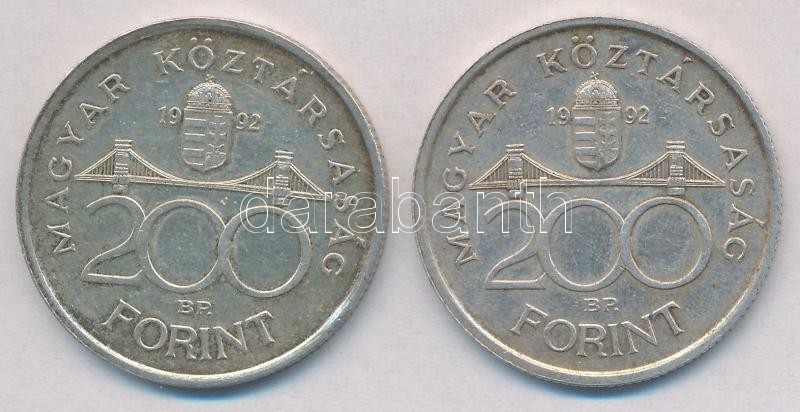 Beschreibung: 1992. 200Ft Ag "MNB" (2x) T:2 kis patina