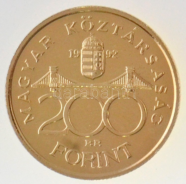 Beschreibung: 1992. 200Ft Ag "MNB" aranyozott T:2
