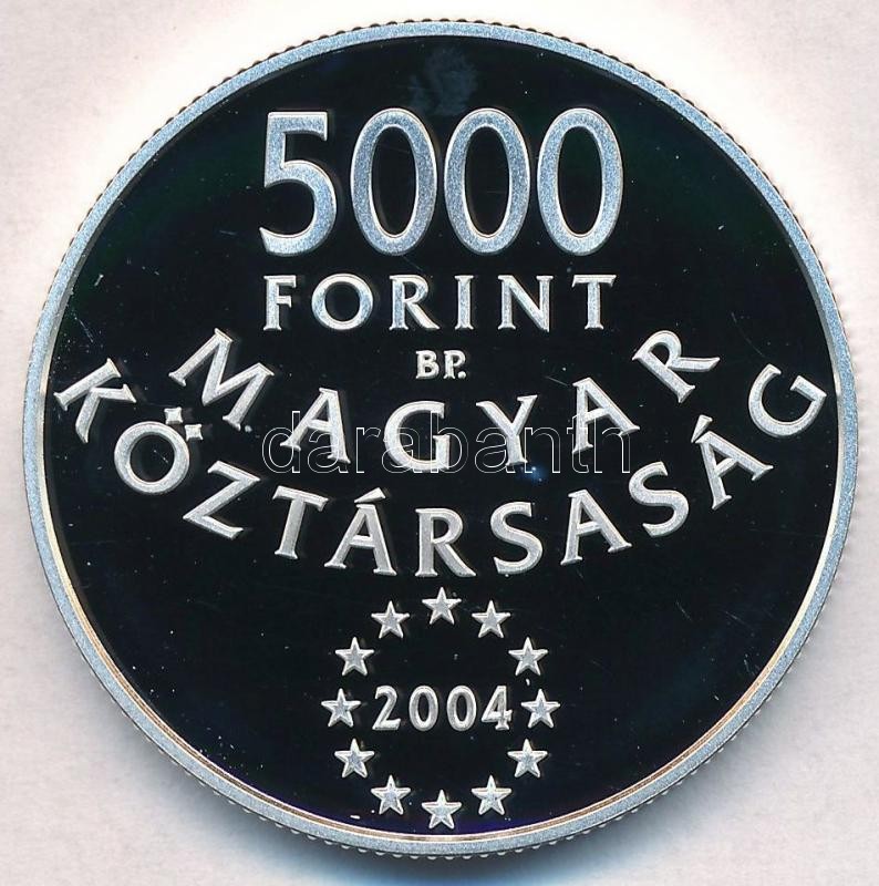 2004. 5000Ft Ag "Magyarország az Európai Unió tagja" tanúsít... https://www.darabanth.com/de/318-Fernauktion/318.0/Numismatik/Ungarische-Munzen-und-Munzen-mit-ungarischem-Munzzeichen~1000007/2004-5000Ft-Ag-Magyarorszag-az-Europai-Unio-tagja-tanusitvannyal-TPP--Adamo-EM190~II1724698