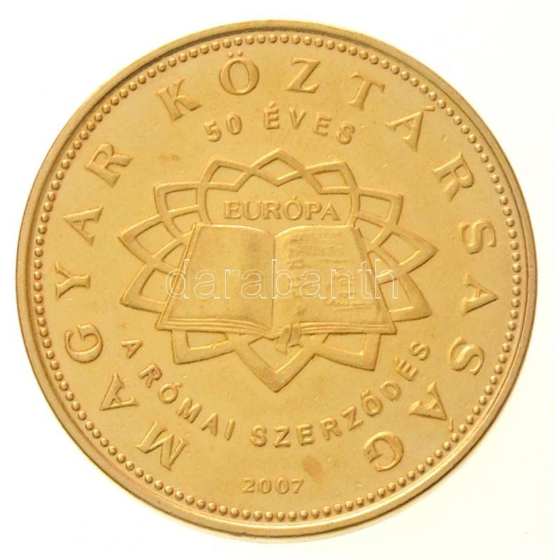 2007. 50Ft Cu-Ni "Római Szerződés" aranyozott forgalmi érme ... https://www.darabanth.com/de/318-Fernauktion/318.0/Numismatik/Ungarische-Munzen-und-Munzen-mit-ungarischem-Munzzeichen~1000007/2007-50Ft-Cu-Ni-Romai-Szerzodes-aranyozott-forgalmi-erme-T2~II1754778