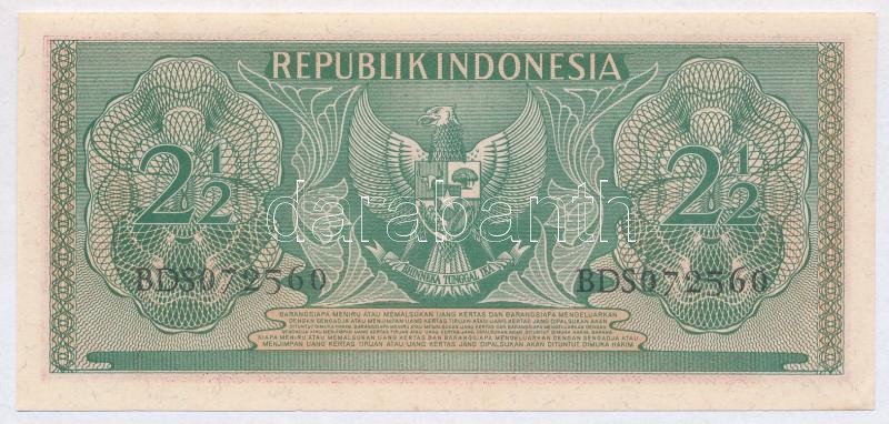 Indonesia 1956. 2 1/2 Rupiah C:UNC,AU