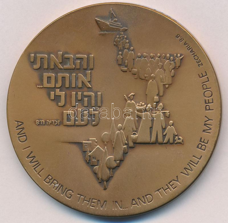 Izrael 1979. "50 éves az Izraeli Zsidó Szövetség" peremen jelzett, számozott Br emlékérem (59mm) T:1-