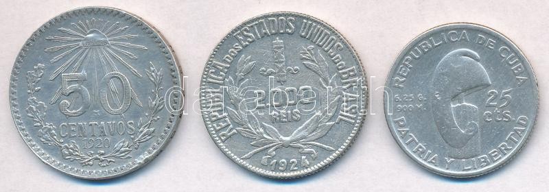 3db-os kis ezüst tétel; Mexikó 1920. 50c Ag + Brazília 1924. 2000R Ag + Kuba 1953. 25c Ag "Jose Marti születésének centenáriuma" T:2,2-