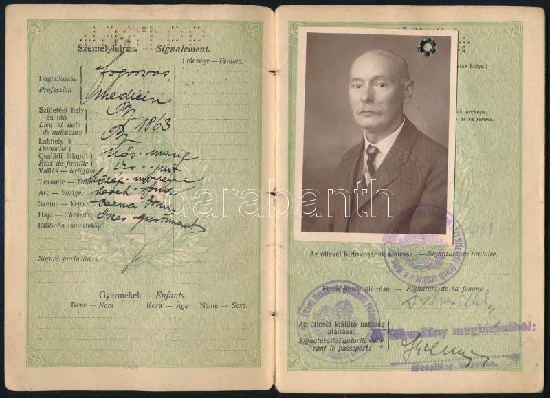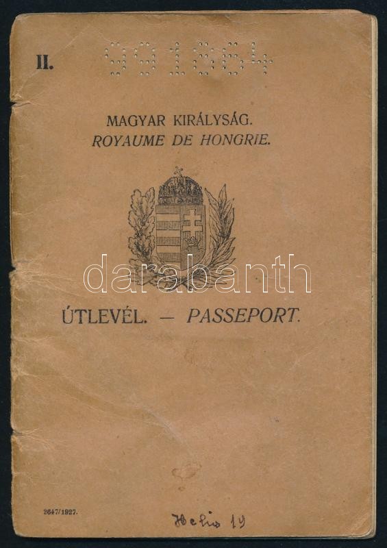 1928 A Magyar Királyság által kiadott fényképes útlevél / Hungarian pa... https://www.darabanth.com/de/319-Fernauktion/319.0/Andere-Sammelgebiete/Dokument~17/1928-A-Magyar-Kiralysag-altal-kiadott-fenykepes-utlevel-Hungarian-passport~II1760188