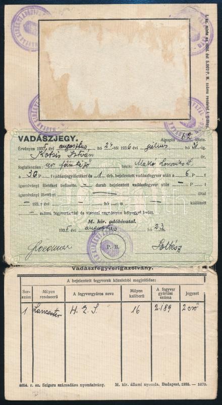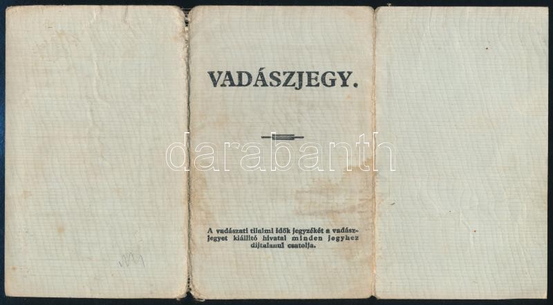 1935 Vadászjegy uradalmi főintéző részére, fénykép nélkül / hunter tic... https://www.darabanth.com/de/319-Fernauktion/319.0/Andere-Sammelgebiete/Dokument~17/1935-Vadaszjegy-uradalmi-fointezo-reszere-fenykep-nelkul-hunter-ticket-without-photo~II1761781