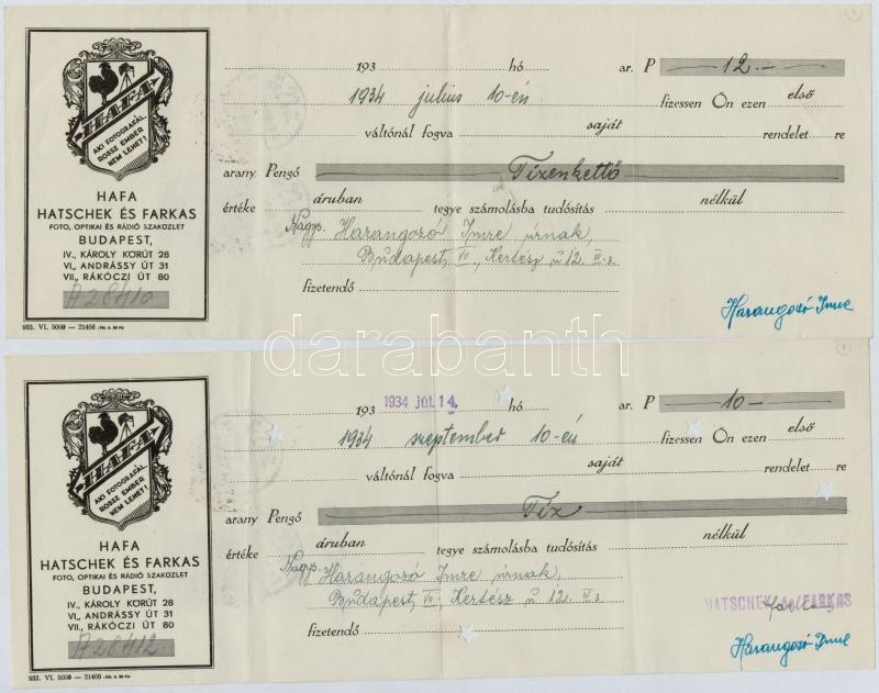 cca 1933 6 db HAFA váltó okmánybélyegekkel https://www.darabanth.com/de/319-Fernauktion/319.0/Andere-Sammelgebiete/Dokument~17/cca-1933-6-db-HAFA-valto-okmanybelyegekkel~II1759074
