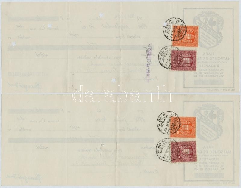 Beschreibung: cca 1933 6 db HAFA váltó okmánybélyegekkel