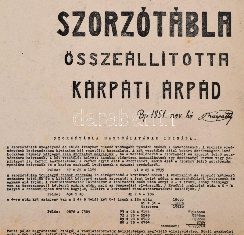 1951 Kihajtható szorzótábla https://www.darabanth.com/de/319-Fernauktion/319.0/Andere-Sammelgebiete/Drucksachen~28/1951-Kihajthato-szorzotabla~II1763944