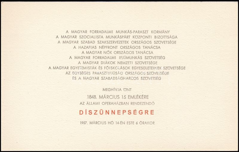 1957 Meghívó a forradalom leverését követő első március 15-i megemléke... https://www.darabanth.com/de/319-Fernauktion/319.0/Andere-Sammelgebiete/Drucksachen~28/1957-Meghivo-a-forradalom-levereset-koveto-elso-marcius-15-i-megemlekezes-operahazi-unne~II1739275