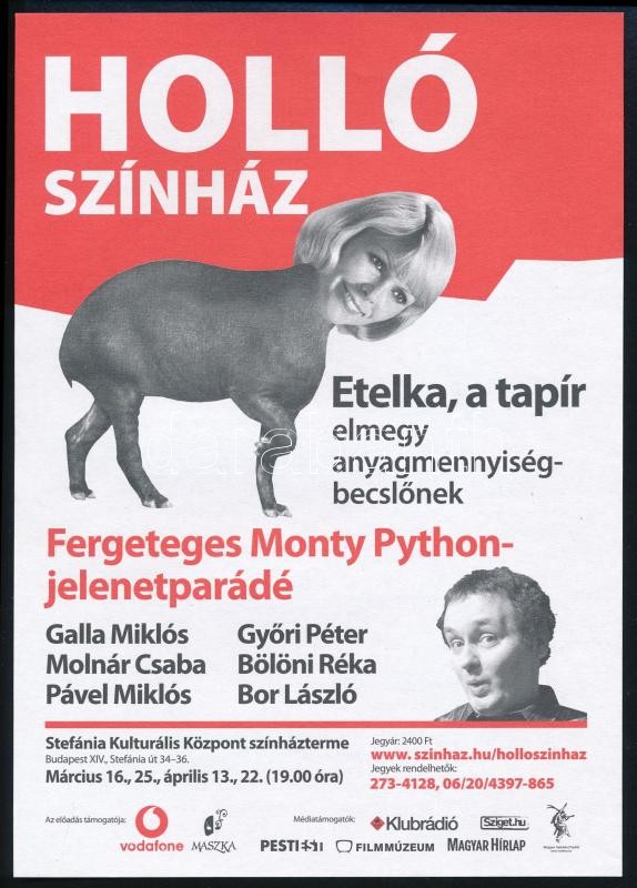 "Etelka, a tapír" - Holló Színház reklámos szórólap, 21x15 c... https://www.darabanth.com/de/319-Fernauktion/319.0/Andere-Sammelgebiete/Drucksachen~28/Etelka-a-tapir--Hollo-Szinhaz-reklamos-szorolap-21x15-cm~II1761006