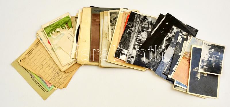 Beschreibung: cca 1900-1970 Vegyes nyomtatvány tétel, összesen 52 db, köztük fotók, képeslapok, keményhátú fotók, nyomtatványok