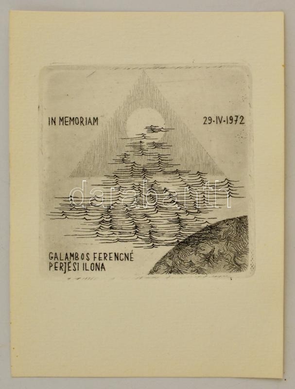 Jelzés nélkül: In memoriam Galambosné Perjés Ilona. Rézkarc, papír, 8×... https://www.darabanth.com/de/319-Fernauktion/319.0/Andere-Sammelgebiete/Ex-libris-Kleingrafik~3/Jelzes-nelkul-In-memoriam-Galambosne-Perjes-Ilona-Rezkarc-papir-8C3978-cm~II1742771