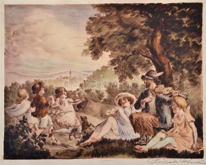 Prihoda István (1891-1965): Mulatozás, színezett rézkarc, papír, jelze... https://www.darabanth.com/de/319-Fernauktion/319.0/Andere-Sammelgebiete/Gemalde-und-Grafiken~2/Prihoda-Istvan-1891-1965-Mulatozas-szinezett-rezkarc-papir-jelzett-25C39732-cm~II1689417