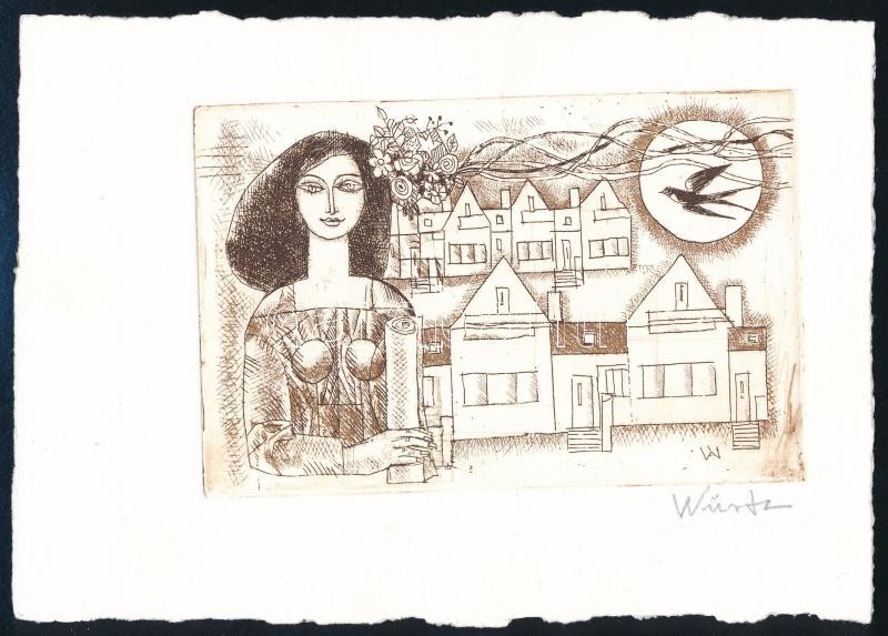 Würtz Ádám (1927-1994): Házak, rézkarc, papír, jelzett, 8×12 cm https://www.darabanth.com/de/319-Fernauktion/319.0/Andere-Sammelgebiete/Gemalde-und-Grafiken~2/Wurtz-Adam-1927-1994-Hazak-rezkarc-papir-jelzett-8C39712-cm~II1761041