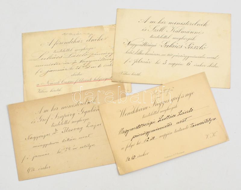 cca 1890 Miniszterelnöki, Főrendiház elnöki meghívók Wenckheim, Lukács... https://www.darabanth.com/de/319-Fernauktion/319.0/Andere-Sammelgebiete/Historische-Dokumenten-Handschriften~18/cca-1890-Miniszterelnoki-Forendihaz-elnoki-meghivok-Wenckheim-Lukacs-Laszlo-Szel-KalmC3~II1761953