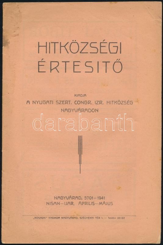 Beschreibung: 1941 Nagyvárad, Hitközségi értesítő, Kosmos Nyomda, tűzött papírkötésben, 16 p.