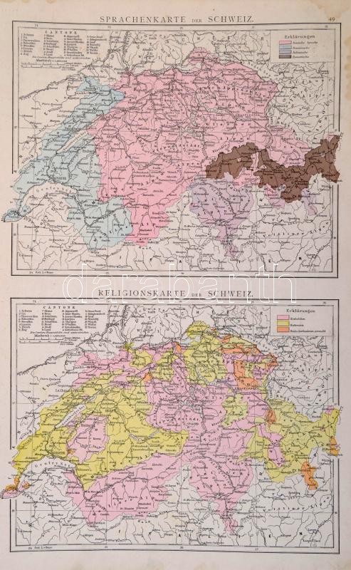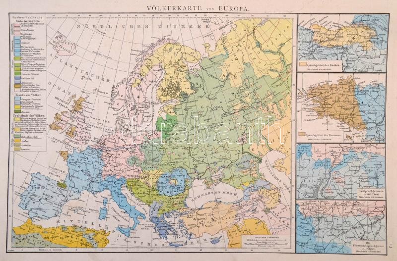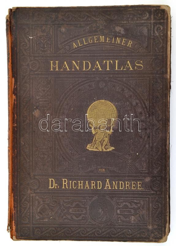 1881 Richard Andree's Allgemeiner Handatlas in sechsundachtzig Karten mit erläutern Text. Bielefeld & Leipzig, 1881, Velhagen & Klasing Verlag, 2 p.+96 t.+98 p. Német nyelven. Kiadói aranyozott félbőr kötés, rossz állapotban, kopott borítóval, sérült gerinccel, sérült kötéssel, kijáró lapokkal, foltos./ Half-leather-binding, in poor condition, damaged, in German language.