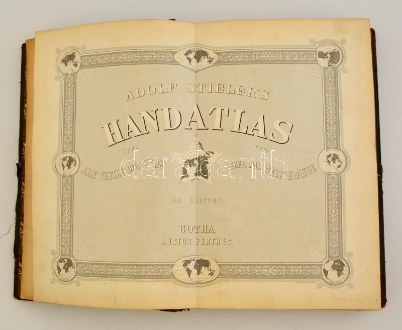 Stieler's Handatlas über alle Theile der Erde un über das Weltgebäude. Gotha, 1881, Justus Perthes. Sérült félbőr kötésben, jó állapotban. Teljes! / In worn out half leather binding, otherwise in good condition. Complete!