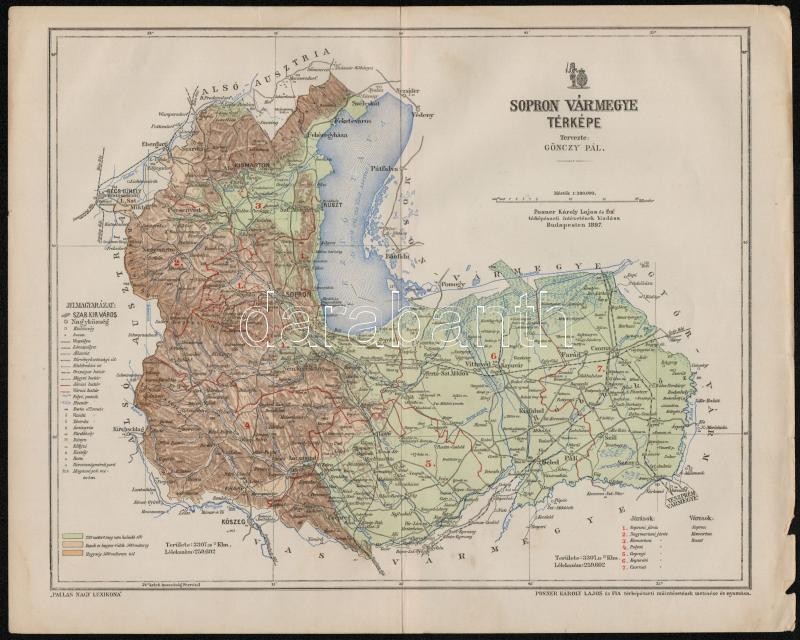 cca 1890 Sopron vármegye térképe. Posner Károly. 29x23 cm https://www.darabanth.com/de/319-Fernauktion/319.0/Andere-Sammelgebiete/Landkarten~27/cca-1890-Sopron-varmegye-terkepe-Posner-Karoly-29x23-cm~II1764110