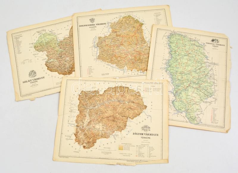 Beschreibung: cca 1890 Zólyom, Torontál, Szolnok-Doboka, Szilágy vármegyék térképe 30x24 cm