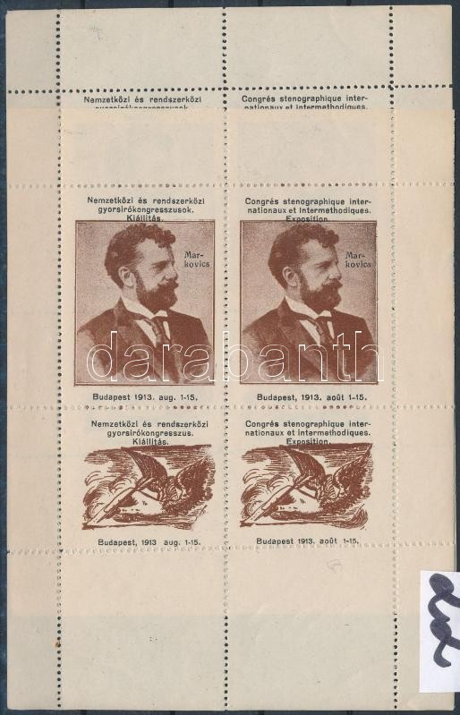 Beschreibung: 1913 Nemzetközi és rendszerközi gyorsíró kongresszus. Kiállítás. Budapest 2 db levélzáró kisív
