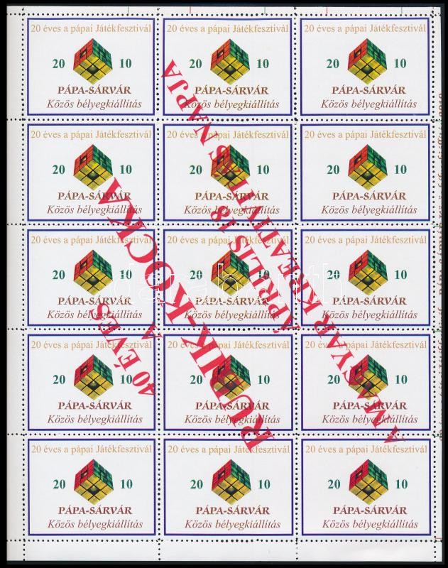 2014 "40 éves a Rubik-kocka - Április 18. A magyar kreativitás napja" felülnyomattal ellátott 2010 Pápa-Sárvár bélyegkiállítás tiszteletére kiadott levélzáró kisív