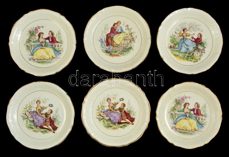 Beschreibung: Ceranord St. Amand barokk jelenettel díszített süteményes tálak, 6 db, matricás, jelzett, kopásnyomokkal, d: 17 cm