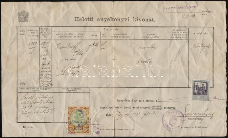Beschreibung: 1924 2 okmánybélyeges okmány Újpest városi illetékbélyegekkel