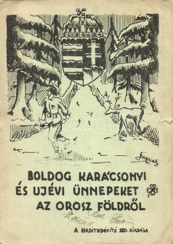 1941 Boldog karácsonyi és újévi ünnepeket az Orosz földről... Tábori Postai Levelezőlap / WWII Christmas and New Year greetings from Russia. Hungarian military field post. s: Jeszenszky (szakadás / tear)