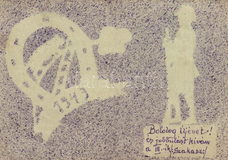 Beschreibung: 1943 Boldog Újévet és jobbulást kíván a III. szakasz! Tábori Postai Levelezőlap / WWII Hungarian military field post, New Year greetings (b)