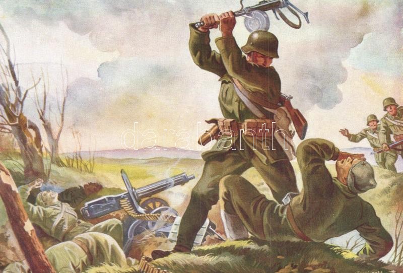 Antal Pál őrmester rajtaütése / WWII Hungarian military art postcard s... https://www.darabanth.com/de/319-Fernauktion/319.0/Ansichtskarten/Militaria~2500087/Antal-Pal-ormester-rajtautese-WWII-Hungarian-military-art-postcard-s-Gonczi-Gebhardt~II1763560