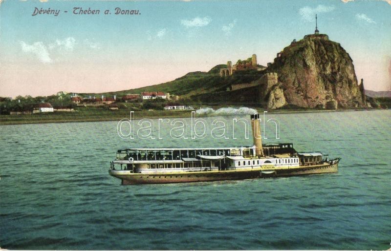 Dévény, Theben a. d. Donau, Devin; Schönbrunn gőzös / SS Schönbrunn https://www.darabanth.com/de/319-Fernauktion/319.0/Ansichtskarten/Slowakei~2500007/Deveny-Theben-a-d-Donau-Devin-Schonbrunn-gozos-SS-Schonbrunn~II1616809