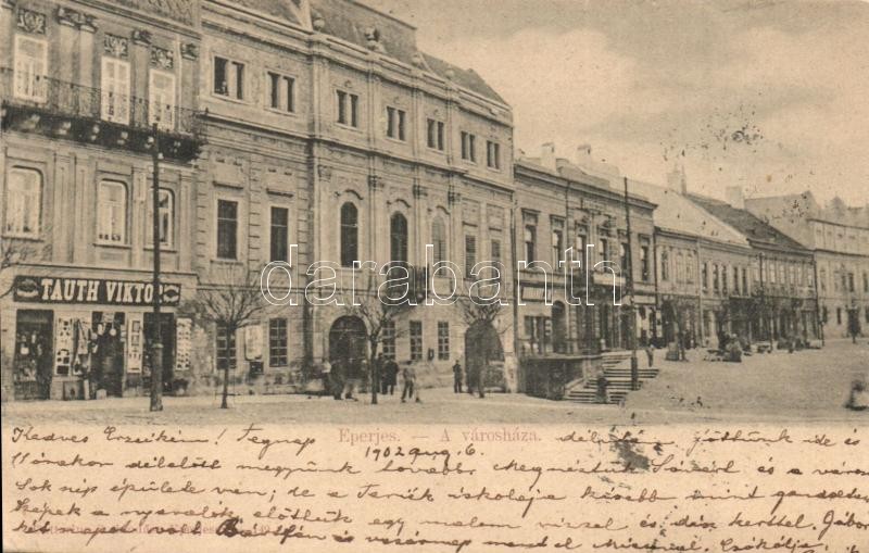 Eperjes, Presov; Városháza, Tauth Viktor üzlete. Cattarino S. kiadása ... https://www.darabanth.com/de/319-Fernauktion/319.0/Ansichtskarten/Slowakei~2500007/Eperjes-Presov-Varoshaza-Tauth-Viktor-uzlete-Cattarino-S-kiadasa-town-hall-shops~II1763486