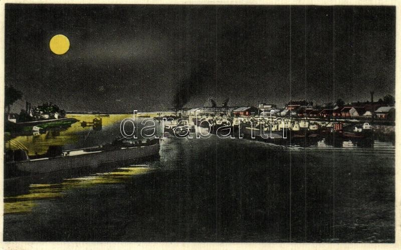 Komárom, Komárno; Duna részlet a kikötővel, gőzhajó, uszályok. L. H. K. 252. / Cast Dunaja s prístavom / Danube riverside, port, harbor, steamships, barges (fl)