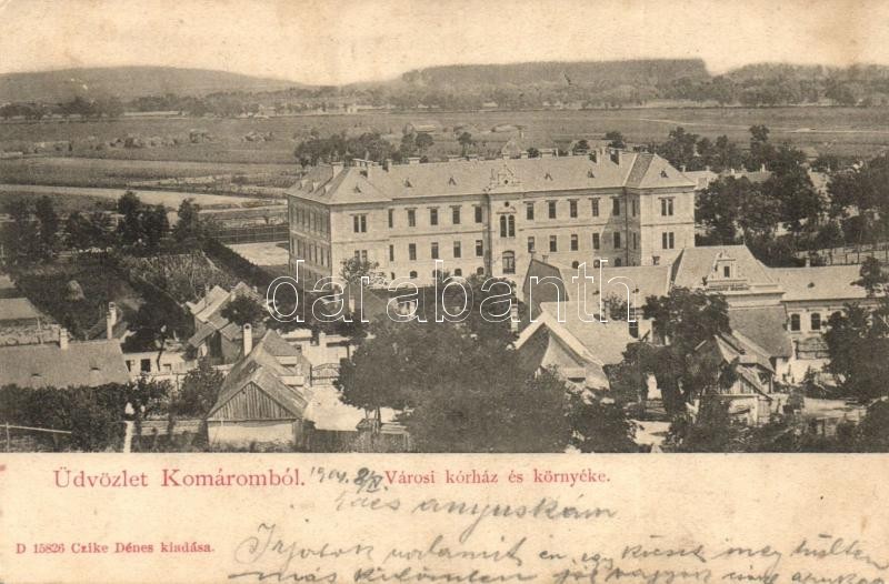 Beschreibung: Komárom, Komárno; Városi kórház és környéke. Czike Dénes kiadása / hospital (kopott sarkak / worn corners)