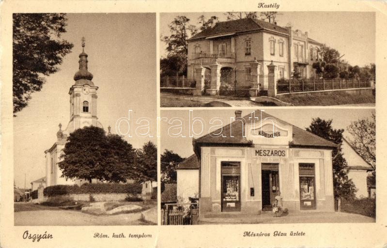 Osgyán, Ozdany; Római katolikus templom, Kastély, Mészáros Géza üzlete... https://www.darabanth.com/de/319-Fernauktion/319.0/Ansichtskarten/Slowakei~2500007/Osgyan-Ozdany-Romai-katolikus-templom-Kastely-Meszaros-Geza-uzlete-es-sajat-kiadasa-~II1759974