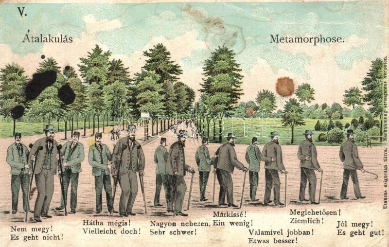 Pöstyén, Piestany; V. Átalakulás. Humoros litho művészlap / Metamorpho... https://www.darabanth.com/de/319-Fernauktion/319.0/Ansichtskarten/Slowakei~2500007/Postyen-Piestany-V-Atalakulas-Humoros-litho-muveszlap-Metamorphose-metamorphosis-Humo~II1764106