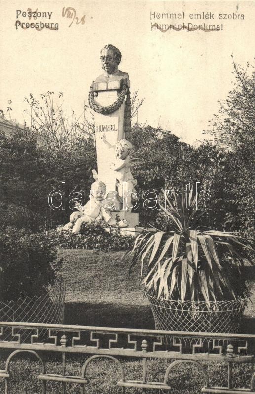 Pozsony, Pressburg, Bratislava; Hummel emlékszobra, S. D. M. 4703. / m... https://www.darabanth.com/de/319-Fernauktion/319.0/Ansichtskarten/Slowakei~2500007/Pozsony-Pressburg-Bratislava-Hummel-emlekszobra-S-D-M-4703-monument-statue-EK~II1590318