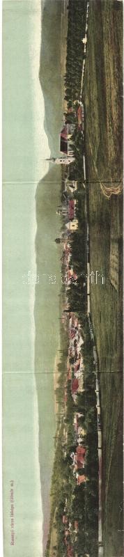 Beschreibung: Rozsnyó, Roznava; három-részes panorámalap. Kiadja Falvi Jenő / three-tiled panoramacard (kis szakadások / small tears)