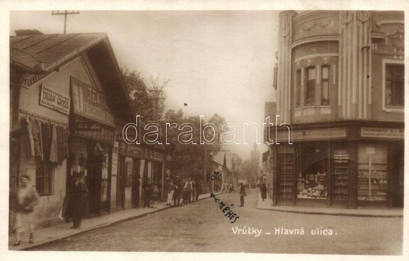 Ruttka, Vrútky; Hlavná ulica / Fő uca, William Gross üzlete / main str... https://www.darabanth.com/de/319-Fernauktion/319.0/Ansichtskarten/Slowakei~2500007/Ruttka-Vrutky-Hlavna-ulica-Fo-uca-William-Gross-uzlete-main-street-shops-photo~II1762233