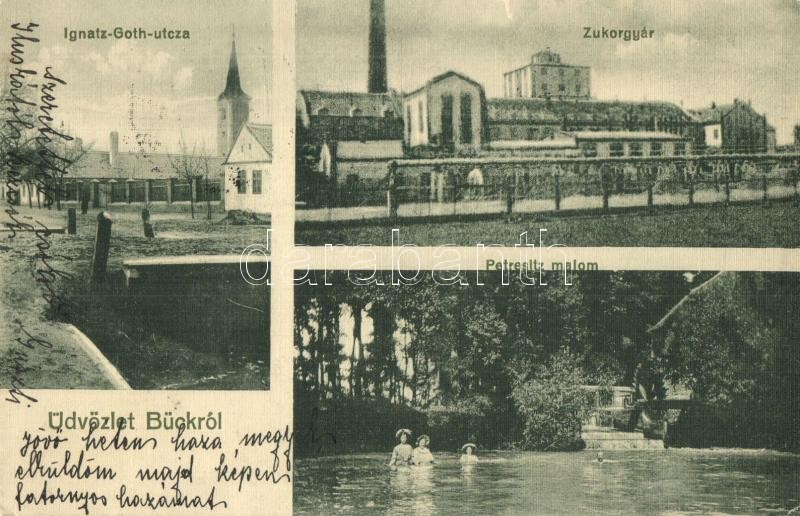 Bük, Bück i. Ung.; Cukorgyár, Petresitz malom, Ignátz Góth utca https://www.darabanth.com/de/319-Fernauktion/319.0/Ansichtskarten/Ungarn~2500005/Buk-Buck-i-Ung-Cukorgyar-Petresitz-malom-Ignatz-Goth-utca~II1585034