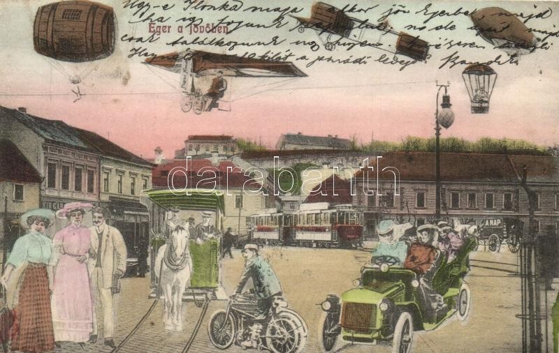Eger, utcakép a jövőben montázslap / in the future montage postcard (E... https://www.darabanth.com/de/319-Fernauktion/319.0/Ansichtskarten/Ungarn~2500005/Eger-utcakep-a-jovoben-montazslap-in-the-future-montage-postcard-EK~II1763502